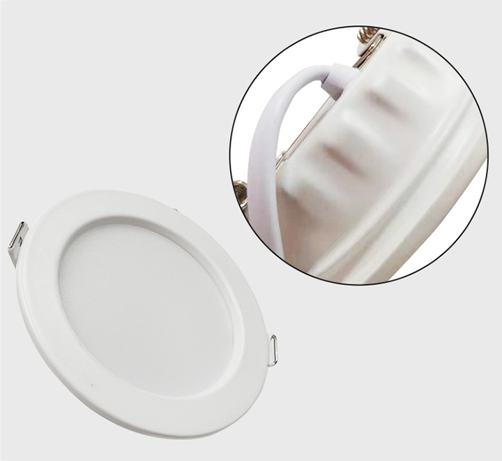![]() 3、放入天花板 用手將產品兩端彈簧卡扣垂直,裝入符合的天花板開孔中。 |
